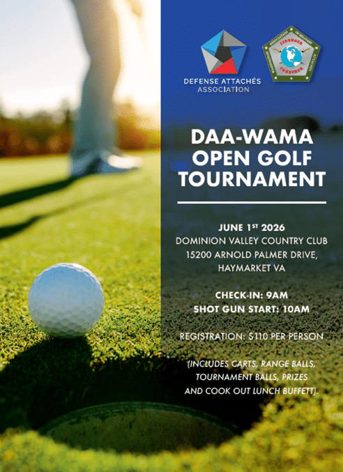 Good morning, ladies and gentlemen of the Corps of Washington Military Attachés! Please see the below email, sent on behalf of the Washington Association of Military Attachés. Please note that [...]